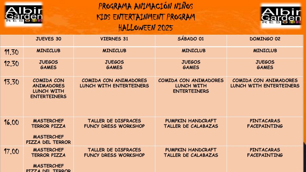 CALENDARIO CENAS EXTERIORES / OUTDOOR DINNER CALENDAR